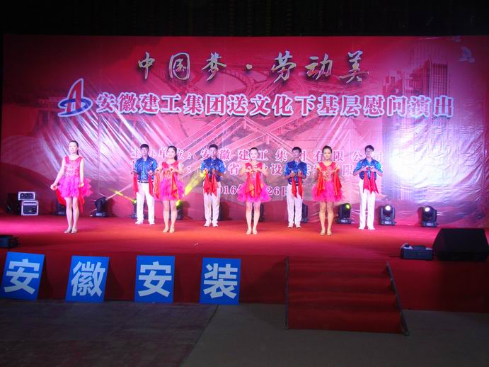 8月26日晚,集團公司送文化下基層深入公司白湖監獄罪犯醫療綜合樓項目部慰問(wèn)演出,白湖監獄綜合樓項目部全體管理人員和農民工兄弟200多人現場(chǎng)觀(guān)看了演出。該工程位于廬江縣白湖鎮,這里工作著(zhù)一批腳踏實(shí)地、埋頭苦干、敢于擔當、奉獻企業(yè)的職工,來(lái)自集團公司各子公司的“演員”,帶著(zhù)自編、自導、自演的精品文藝作品,將用一場(chǎng)精妙的文化活動(dòng),在這里掀起文化與建設互動(dòng)的歡樂(lè )波瀾。集團公司工會(huì )主席徐曉光,白湖分局黨委副書(shū)記、總經(jīng)理沈建華以及公司有關(guān)領(lǐng)導和參演單位工會(huì )主席出席了演出活動(dòng)。