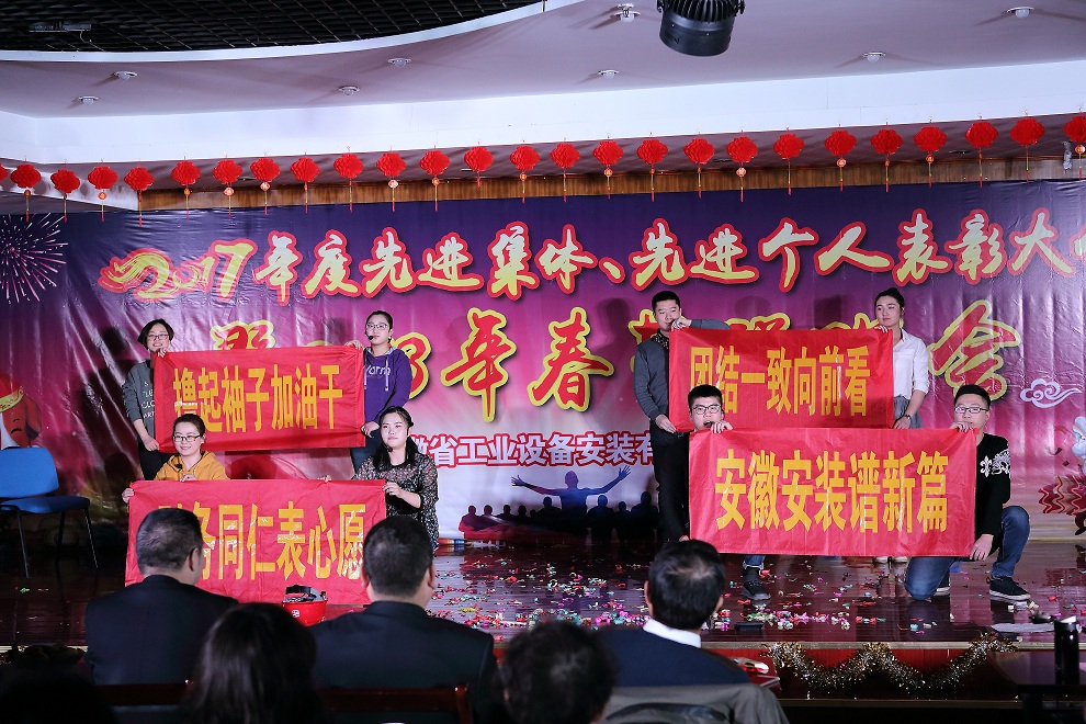 公司董事長(cháng)、總經(jīng)理王軍邦發(fā)表了熱情洋溢的新年致辭。他指出,2017年,集團公司整體上市成功,公司作為集團產(chǎn)業(yè)鏈安裝板塊的重要一環(huán),順利實(shí)現整體上市。公司上下緊扣發(fā)展第一要務(wù),聚精會(huì )神抓黨建,一心一意謀發(fā)展,團結奮進(jìn),扎實(shí)工作,實(shí)現產(chǎn)值12.28億元,合同額15.52億元,利潤突破千萬(wàn)元,創(chuàng )歷史新高;新疆市場(chǎng)進(jìn)一步開(kāi)拓,承接了安裝公司有史以來(lái)最大的新疆烏蘇管廊項目3.59億元。在集團的大力支持下,中標新疆市場(chǎng)博爾塔拉蒙古自治州兩個(gè)PPP項目,共計39.79億元,全面超額完成年度各項指標任務(wù)。這些成績(jì)的取得凝聚著(zhù)安徽安裝人的心血和汗水,是我們眾志成城、頑強拼搏、砥礪奮進(jìn)的結果;2018年,讓我們統一思想、齊心協(xié)力,用智慧、靠實(shí)干、憑業(yè)績(jì),主動(dòng)作為,為開(kāi)創(chuàng )安徽安裝發(fā)展新局面而持續奮斗!