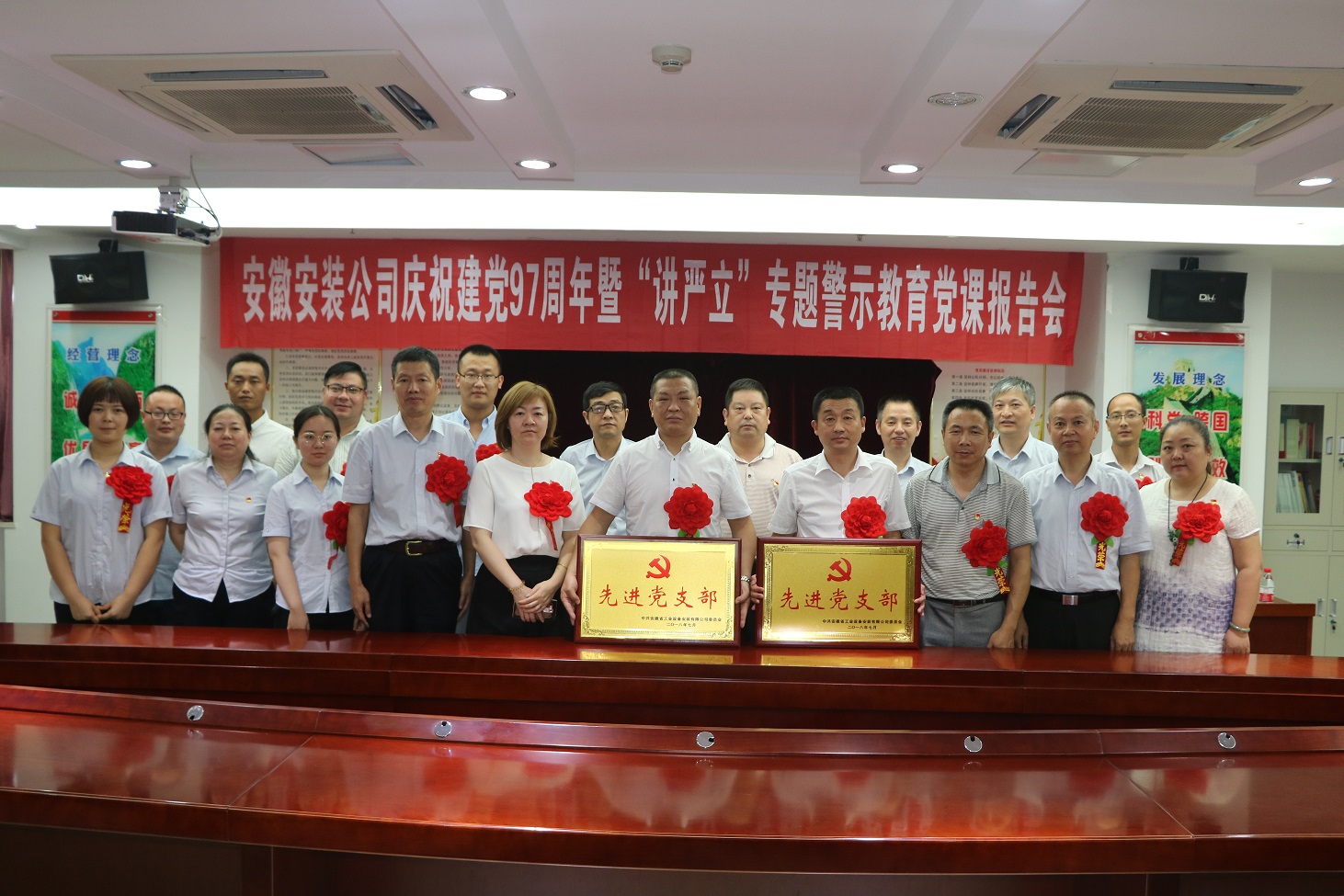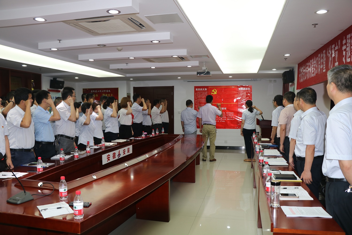 為慶祝中國共產(chǎn)黨建黨97周年,扎實(shí)開(kāi)展好“講忠誠、嚴紀律、立政德”專(zhuān)題警示教育,推動(dòng)全面從嚴治黨向縱深發(fā)展。7月4日下午,安徽安裝公司黨委召開(kāi)慶祝建黨97周年暨“講嚴立”專(zhuān)題警示教育黨課報告會(huì )。公司黨委書(shū)記、副總經(jīng)理胡六中作了題為《講忠誠 嚴紀律 立政德 做新時(shí)代合格共產(chǎn)黨員》的黨課報告。公司董事長(cháng)、總經(jīng)理、黨委副書(shū)記王軍邦主持會(huì )議并宣貫集團公司慶祝建黨97周年暨黨的建設工作會(huì )議精神。黨委委員、副總經(jīng)理劉安俊宣讀表彰決定。公司領(lǐng)導班子成員、機關(guān)部門(mén)正副職、機關(guān)在崗黨員、分公司領(lǐng)導班子成員和受表彰的先進(jìn)基層黨組織、優(yōu)秀共產(chǎn)黨員和優(yōu)秀黨務(wù)工作者共70余人參加會(huì )議。