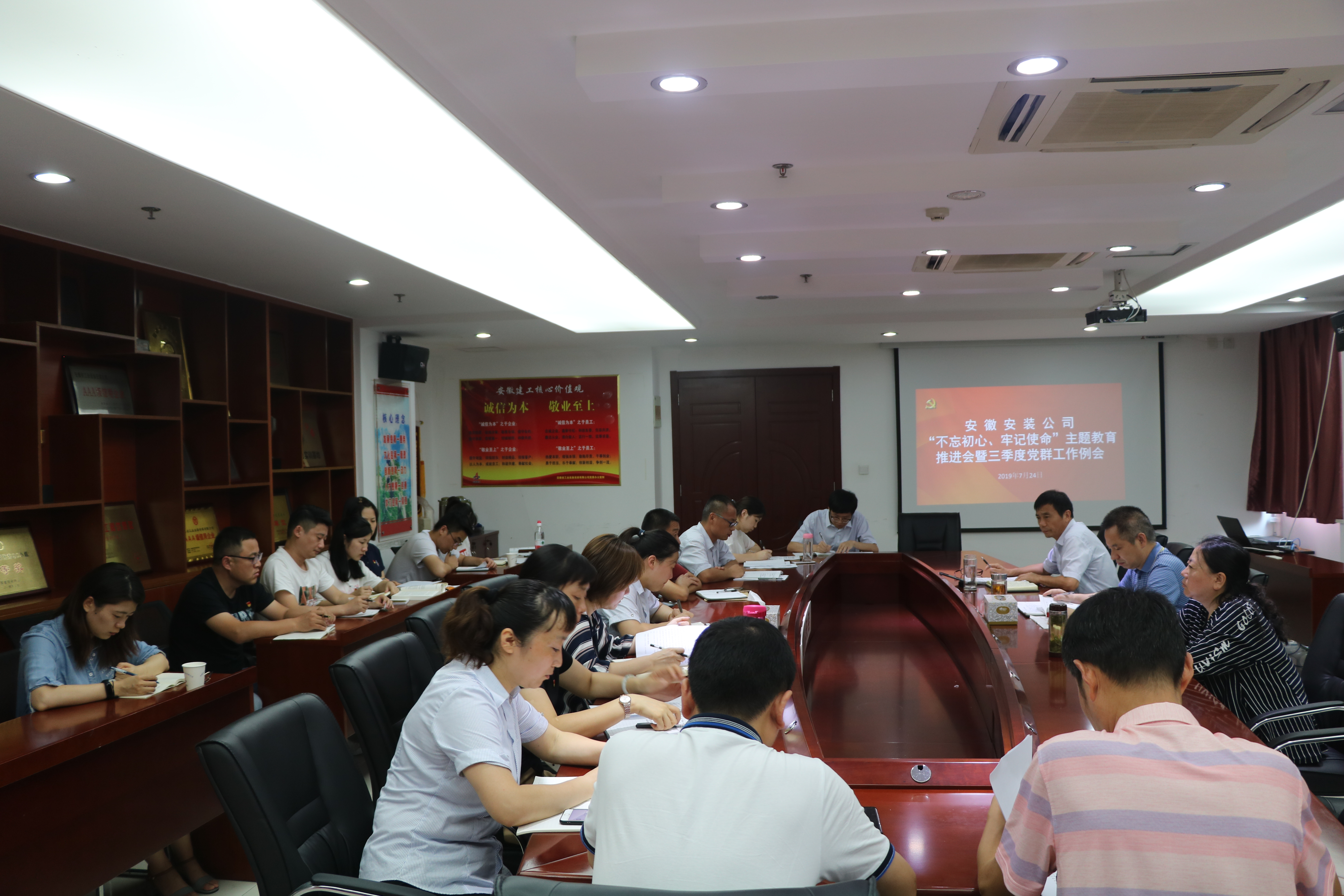 7月24日下午,安徽安裝公司黨委召開(kāi)“不忘初心、牢記使命”主題教育工作推進(jìn)會(huì )暨三季度黨群工作會(huì )議。公司有關(guān)領(lǐng)導、黨群部門(mén)人員、所屬各黨支部書(shū)記、工會(huì )及團支部主要負責同志參加會(huì )議,會(huì )議由公司黨委委員、紀委書(shū)記、工會(huì )主席李寬旭主持。