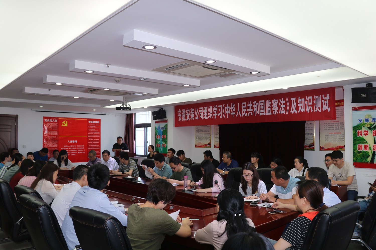 隨后,為了檢驗學(xué)習效果,當場(chǎng)進(jìn)行了《監察法》知識測試,考試過(guò)程中,全體參考人員嚴守考場(chǎng)紀律,態(tài)度端正、認真答卷,考場(chǎng)秩序井然有序,確保了考試的公正嚴肅性。此次測試題型設置上為單選題和簡(jiǎn)答題,卷面滿(mǎn)分100分,通過(guò)此次知識測試,使機關(guān)全體干部職工對自身所擔負的責任和應盡的義務(wù)有了更加全面的認識,增強了依法監督意識,達到了以考促考的目的,為推動(dòng)國有企業(yè)黨風(fēng)廉政建設和反腐敗工作營(yíng)造良好氛圍。