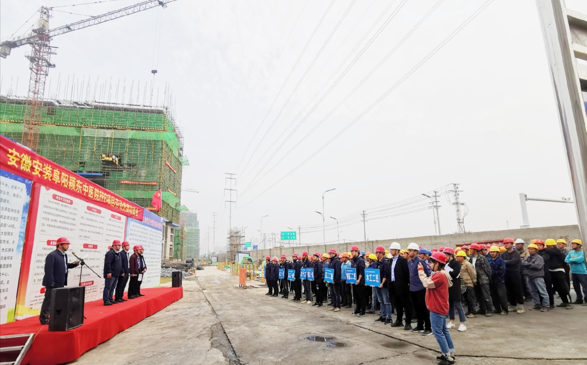 為確保年度各項目目標任務(wù)順利完成,貫徹落實(shí)集團公司開(kāi)展“搶進(jìn)度、保工期、穩預期、促提升”為主題勞動(dòng)競賽活動(dòng)精神,2019年10月11日上午,安徽安裝召開(kāi)阜陽(yáng)潁東區中醫院PPP項目“大干四季度”勞動(dòng)競賽動(dòng)員大會(huì )。公司副總經(jīng)理高飛,紀委書(shū)記、工會(huì )主席李寬旭,總工程師吳繼成,公司相關(guān)部門(mén)負責人、項目管理人員和施工班組共120多人參加了競賽動(dòng)員會(huì )。