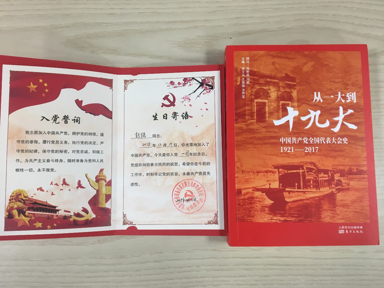 會(huì )上,黨支部書(shū)記程茂麗首先宣讀了12月份過(guò)政治生日的黨員名單,接著(zhù)分別向他們贈送“政治生日”賀卡和《從一大到十九大》書(shū)籍禮物。隨后,黨員彭陸同志結合自己入黨一年來(lái)的歷程發(fā)表了生日感言,與大家分享加入黨組織以來(lái)成長(cháng)歷程的點(diǎn)點(diǎn)滴滴,并結合本職工作,展望未來(lái)工作,牢記使命擔當。