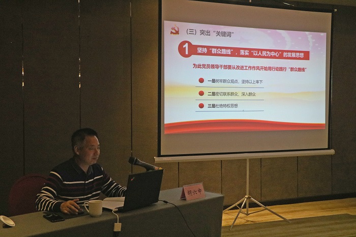 胡六中在報告中帶領(lǐng)大家共同回顧了習近平總書(shū)記考察安徽行程路線(xiàn)和重要講話(huà)精神,他指出,總書(shū)記在考察中多次提到“要牢固樹(shù)立以人民為中心的發(fā)展思想”“要踐行黨的宗旨,樹(shù)牢群眾觀(guān)點(diǎn)”“要多謀民生之利、多解民生之憂(yōu)”,全體黨員領(lǐng)導干部一要從改進(jìn)工作作風(fēng)開(kāi)始用行動(dòng)踐行“群眾路線(xiàn)”,落實(shí)“以人民為中心”的發(fā)展思想;二要堅持“黨管干部”,全面深化干部制度改革;三要堅持“一體化”和“高質(zhì)量”,推動(dòng)黨建與生產(chǎn)經(jīng)營(yíng)深度融合。