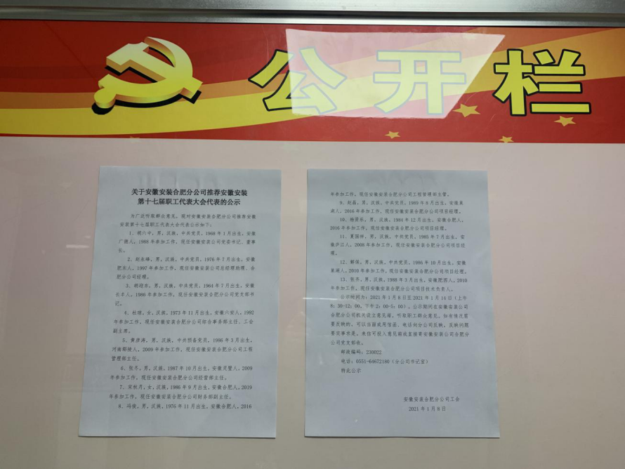 近日,安徽安裝公司工會(huì )組織開(kāi)展公司第十七屆職工代表大會(huì )職工代表?yè)Q屆選舉工作。