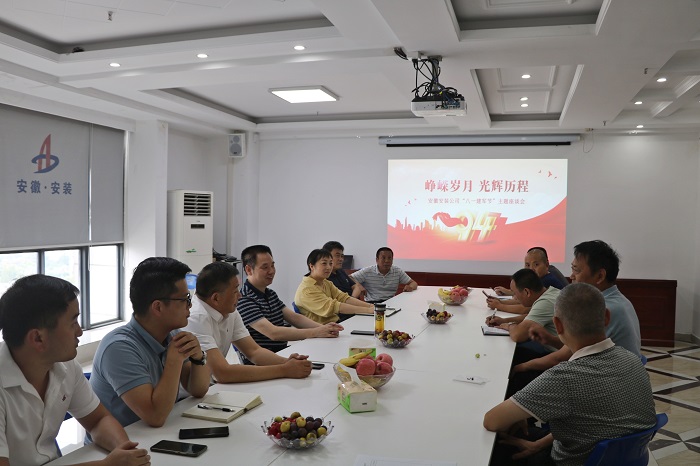 2021年8月1日是中國人民解放軍建軍94周年,8月2日,安徽安裝公司組織召開(kāi)了“八一”建軍節主題座談會(huì )。座談會(huì )由公司工會(huì )副主席、人力資源部經(jīng)理王敏主持,黨委書(shū)記、董事長(cháng)胡六中出席,10名公司在職的退伍軍人參加了座談會(huì )。