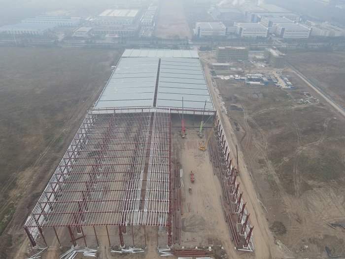 由合肥分公司承建的安徽建工智能鋼構項目正在緊張施工中,現主體架構已初現雛形。11月17日上午,項目部“50米跨屋面梁吊裝”工作正在進(jìn)行,公司總工程師吳繼成現場(chǎng)指導吊裝工作,并為第一榀屋面梁進(jìn)行掛紅儀式。公司總經(jīng)理助理、合肥分公司經(jīng)理、黨支部書(shū)記趙永峰,公司總工辦、安全部等相關(guān)部門(mén)負責同志參加。
