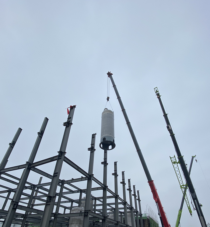 十余噸的罐體在吊車(chē)的牽引下緩緩升起,小心翼翼,精準前往指定基礎,施工人員進(jìn)行固定矯正...30多臺工業(yè)用罐就這樣矗立起來(lái)。