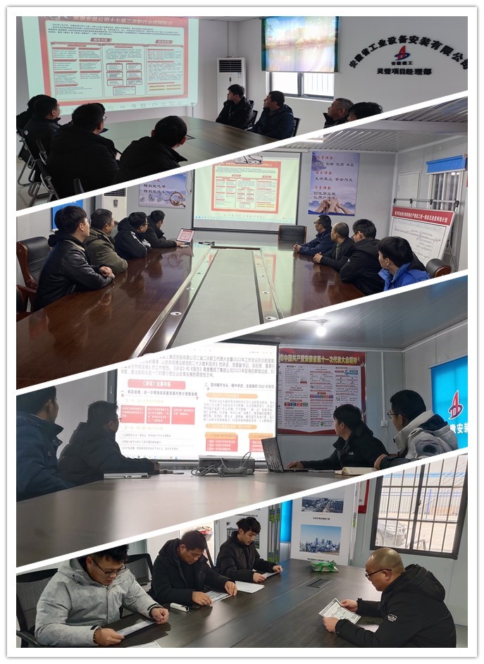 學(xué)習會(huì )上,分別宣貫了集團二屆二次職代會(huì )暨2022年工作會(huì )議和公司十七屆二次職代會(huì )精神,重點(diǎn)對集團黨委書(shū)記、董事長(cháng)趙時(shí)運作的題為《奮力譜寫(xiě)安徽建工高質(zhì)量發(fā)展新篇章 以?xún)?yōu)異成績(jì)迎接黨的二十大勝利召開(kāi)》的講話(huà)和集團黨委副書(shū)記、總經(jīng)理、董事劉家靜作的題為《拉高標桿、爭創(chuàng )一流 奮力實(shí)現安徽建工更高質(zhì)量更可持續發(fā)展》工作報告主要內容進(jìn)行了傳達,對公司黨委書(shū)記、董事長(cháng)胡六中作的題為《守正創(chuàng )新 實(shí)干篤行 強基固本 競進(jìn)提質(zhì) 以趕考姿態(tài)答好安徽安裝高質(zhì)量發(fā)展新答卷》工作報告和題為《黨建領(lǐng)航聚合力 深度融合強保障 以高質(zhì)量黨建領(lǐng)航安徽安裝高質(zhì)量發(fā)展》的講話(huà)進(jìn)行認真學(xué)習。