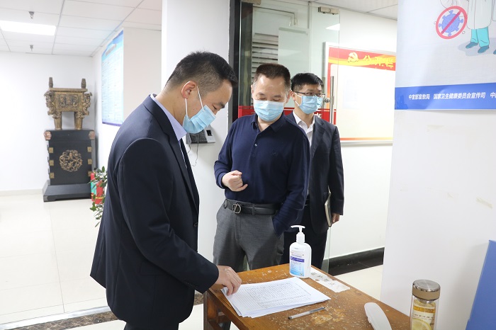 黃代實(shí)地督查了安徽安裝機關(guān)辦公場(chǎng)所和合肥分公司,通過(guò)現場(chǎng)查看、查閱臺賬資料等方式,重點(diǎn)督查“兩碼”應用、測溫、人員進(jìn)出登記、防疫物資發(fā)放和儲備等疫情防控措施落實(shí)情況。