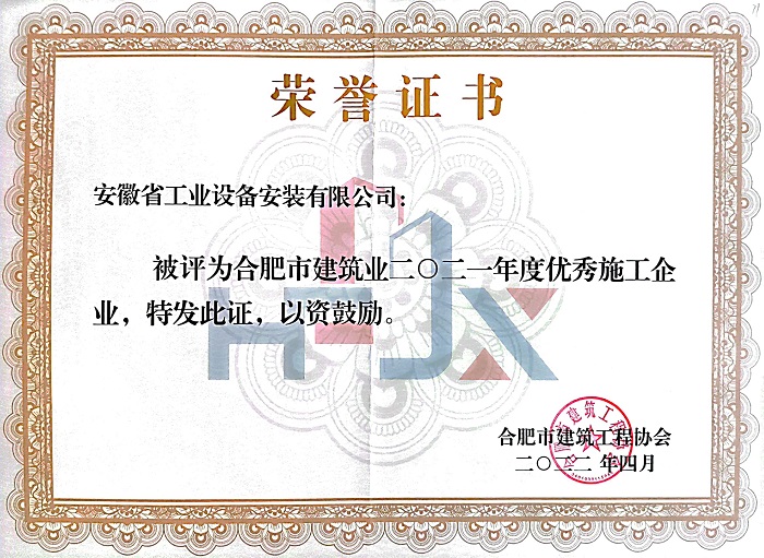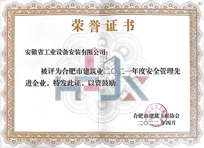 近日,合肥市建筑工程協(xié)會(huì )傳來(lái)喜訊,2021年度合肥市優(yōu)秀企業(yè)、單項先進(jìn)企業(yè)的評選已出爐,安徽安裝再次斬獲“合肥建筑業(yè)優(yōu)秀施工企業(yè)”“合肥建筑業(yè)安全管理先進(jìn)企業(yè)”榮譽(yù)稱(chēng)號。