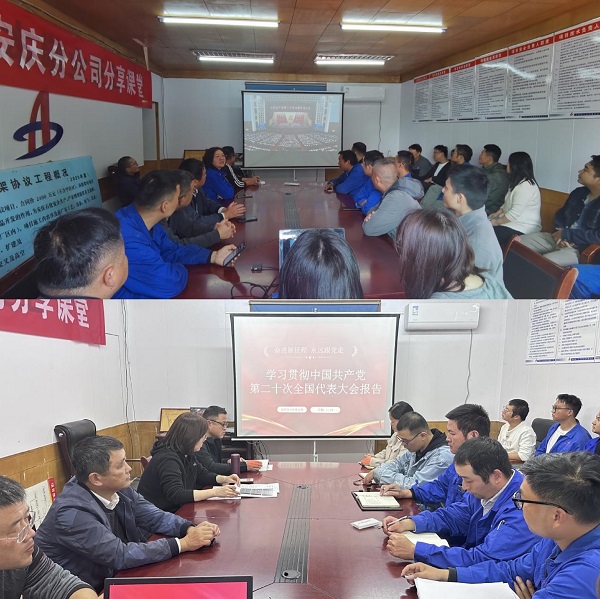 安慶分公司黨支部精心組織及時(shí)學(xué)。組織全體員工收聽(tīng)收看黨的二十大開(kāi)幕會(huì )、中共中央介紹解讀黨的二十大報告新聞發(fā)布會(huì ),通過(guò)電視、網(wǎng)絡(luò )、廣播等多種渠道及時(shí)了解和關(guān)注大會(huì )盛況,第一時(shí)間學(xué)習領(lǐng)會(huì )黨的二十大精神。組織購買(mǎi)《黨的二十大輔導讀本》、新修改的《中國共產(chǎn)黨章程》學(xué)習用書(shū),向黨員干部發(fā)放,通過(guò)黨員大會(huì )、黨員活動(dòng)日、黨員帶頭領(lǐng)學(xué)等形式,為全面深入學(xué)習黨的二十大精神,安慶分公司全體黨員領(lǐng)導干部堅持精研細讀黨的二十大報告、黨章等大會(huì )文件,全面系統地領(lǐng)會(huì )和把握黨的二十大精神,在真學(xué)真懂、真悟真用上作好表率、走在前列,帶動(dòng)全分公司上下迅速掀起學(xué)習宣傳貫徹黨的二十大精神熱潮。