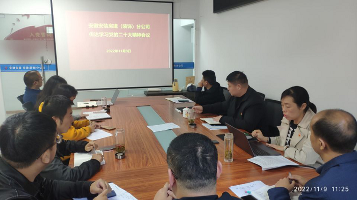 11月9日上午,房建(裝飾)分公司黨支部組織全體黨員、機關(guān)干部職工、在肥項目經(jīng)理召開(kāi)學(xué)習宣貫黨的二十大精神專(zhuān)題會(huì )議。會(huì )議由支部書(shū)記程茂麗主持。