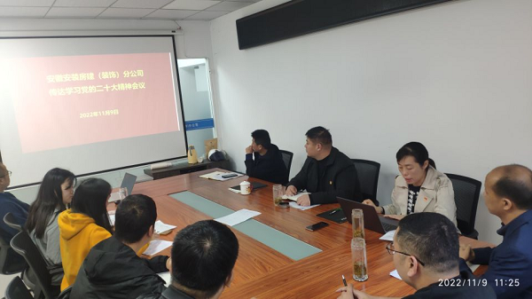 11月9日上午,房建(裝飾)分公司黨支部組織全體黨員、在肥干部職工、項目經(jīng)理召開(kāi)學(xué)習研討黨的二十大精神專(zhuān)題會(huì )議。會(huì )議要求,全體干部職工要統一思想,凝心聚力,把學(xué)習二十大精神與與分公司實(shí)際工作相結合,對照年初各項指標任務(wù),努力強弱項,補短板,狠抓落實(shí),推動(dòng)分公司各項工作上臺階。