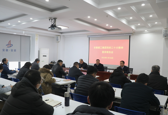 1月18日下午,建工控股黨委委員、副總經(jīng)理盛明宏率集團第八宣講組赴安徽安裝宣講黨的二十大精神并開(kāi)展調研座談。股份公司黨委委員、副總經(jīng)理黃代,集團投資管理部部長(cháng)孫仁發(fā),安徽安裝領(lǐng)導班子成員、機關(guān)部門(mén)負責同志參加宣講座談。