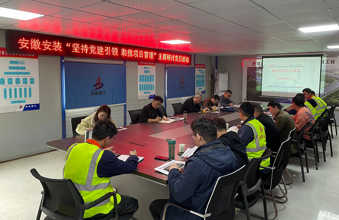 近日,安徽安裝公司黨委結合2023年一季度工程項目管理綜合檢查,到房建(裝飾)分公司阜南污水處理廠(chǎng)項目部和蚌埠分公司凱盛項目部組織開(kāi)展了“堅持黨建引領(lǐng) 助推項目管理”主題研討黨日活動(dòng)。公司黨委辦公室、工程管理部(安全管理部)、物資管理部、招標辦公室、所屬分公司及項目部班子成員參加了此次活動(dòng)。