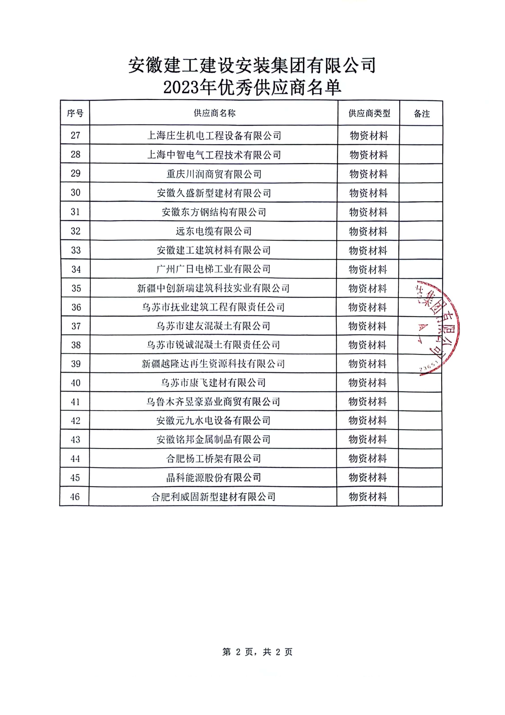 關(guān)于公布2023年度公司優(yōu)秀供應商的通知