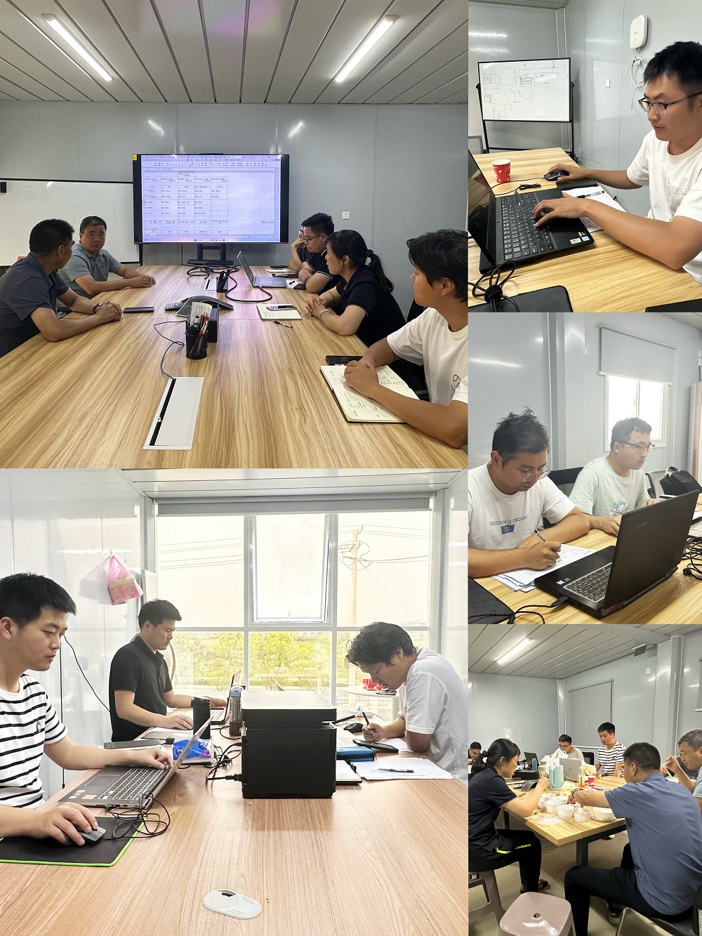 這是建工安裝新橋智能制造產(chǎn)業(yè)園一階段一標機電安裝工程項目端午節期間項目部現場(chǎng)的真實(shí)寫(xiě)照。雖然是端午小長(cháng)假,但項目上所有工作都在緊張有序進(jìn)行中,項目部全體管理人員放棄節假日休息,加班加點(diǎn)開(kāi)展項目前期材料詢(xún)價(jià)、工程量核算、圖紙審核、材料、施工進(jìn)度以及勞動(dòng)力進(jìn)場(chǎng)計劃等安排,優(yōu)化施工方案,科學(xué)合理配置施工設備,加快推進(jìn)項目前期各項準備工作,確保項目后續工作順利開(kāi)展。