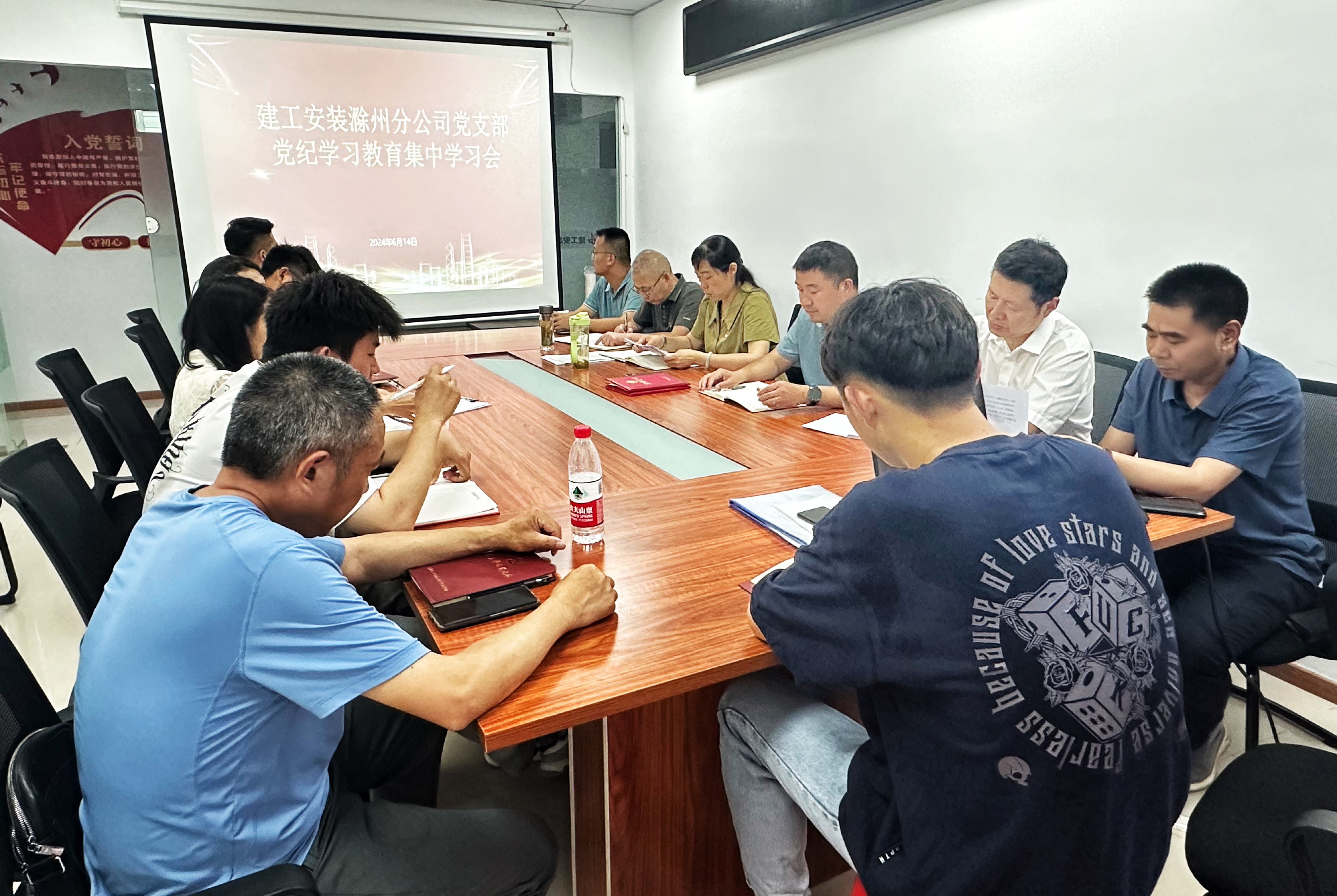 為推動(dòng)分公司黨紀學(xué)習教育深入開(kāi)展,進(jìn)一步增強黨員干部職工紀律規矩意識,6月14日,建工安裝滁州分公司黨支部組織召開(kāi)了黨紀學(xué)習教育集中學(xué)習推進(jìn)會(huì ),會(huì )議由分公司黨支部書(shū)記、副經(jīng)理程茂麗主持。