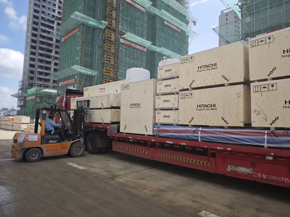 現場(chǎng)人員正在進(jìn)行到貨電梯檢查