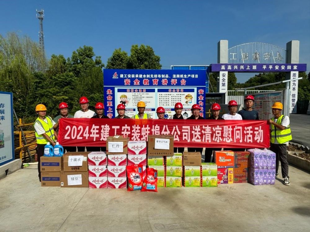 分公司領(lǐng)導班子先后到六鋼大廈(酒店)工程施工總承包項目、蚌埠高新區電子信息產(chǎn)業(yè)園EPC項目室外廊架管網(wǎng)工程項目、年產(chǎn)2000噸氯蟲(chóng)苯甲酰胺原藥及中間體項目、安徽深巖醫藥化工科技有限公司醫藥中間體及新材料項目廠(chǎng)區單體工程項目、水刺無(wú)紡布制品.濕廁紙生產(chǎn)項目現場(chǎng),為一線(xiàn)施工人員準備了礦泉水、冰紅茶、綠豆、西瓜等防暑降溫物品,對他們的辛勤付出表示感謝,并反復叮囑大家要注意防暑降溫,合理安排施工和休息時(shí)間,確保施工安全。