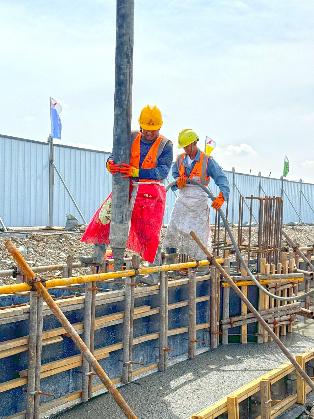 該項目施工現場(chǎng)人頭攢動(dòng),機械轟鳴,駐場(chǎng)技術(shù)人員頭頂烈日、靠前指揮,施工工人往來(lái)穿梭,或支設模板,或綁扎鋼筋,與夏競速,“激戰”正酣。項目工期緊任務(wù)重,為搶進(jìn)度、嚴安全、保工期、抓質(zhì)量,項目部嚴格制定施工進(jìn)度計劃,統籌安排施工人、材、機,合理高效進(jìn)場(chǎng)施工作業(yè),目前項目正在進(jìn)行變電所及廠(chǎng)房的基礎工程。