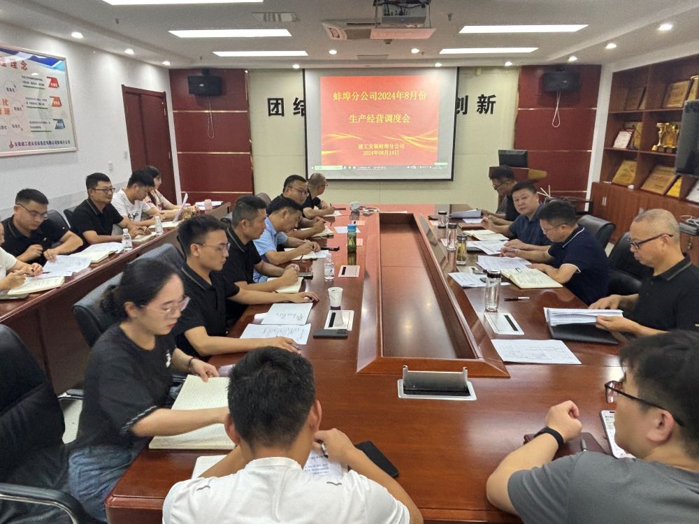 8月14日上午,蚌埠分公司組織召開(kāi)8月份生產(chǎn)經(jīng)營(yíng)調度會(huì ),分公司領(lǐng)導班子成員、所屬各項目部、機關(guān)各部門(mén)負責人及工程管理部全體員工參加會(huì )議,會(huì )議由分公司副經(jīng)理張斌主持。