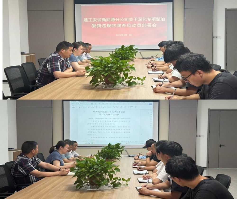 8月14日下午,建工安裝新能源分公司召開(kāi)專(zhuān)題會(huì )議,對宣貫深化專(zhuān)項整治狠剎違規吃喝歪風(fēng)工作進(jìn)行了動(dòng)員部署,會(huì )議由黨支部書(shū)記劉紅艷主持。