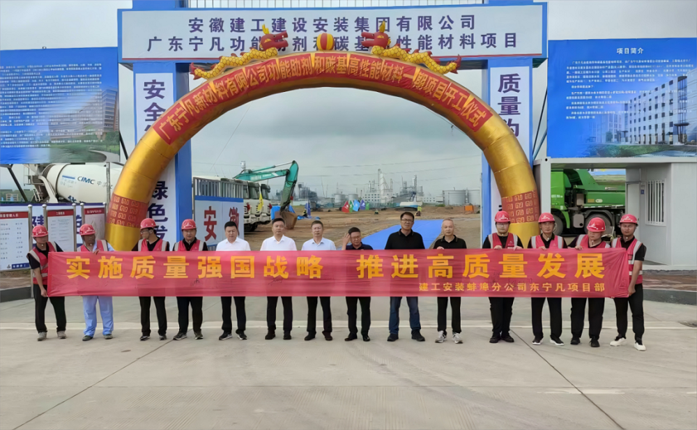 建工安裝黨委書(shū)記、董事長(cháng)朱珍宏出席建工安裝蚌埠分公司廣東寧凡新材料有限公司功能助劑和碳基高性能材料一期項目質(zhì)量月活動(dòng)啟動(dòng)儀式
