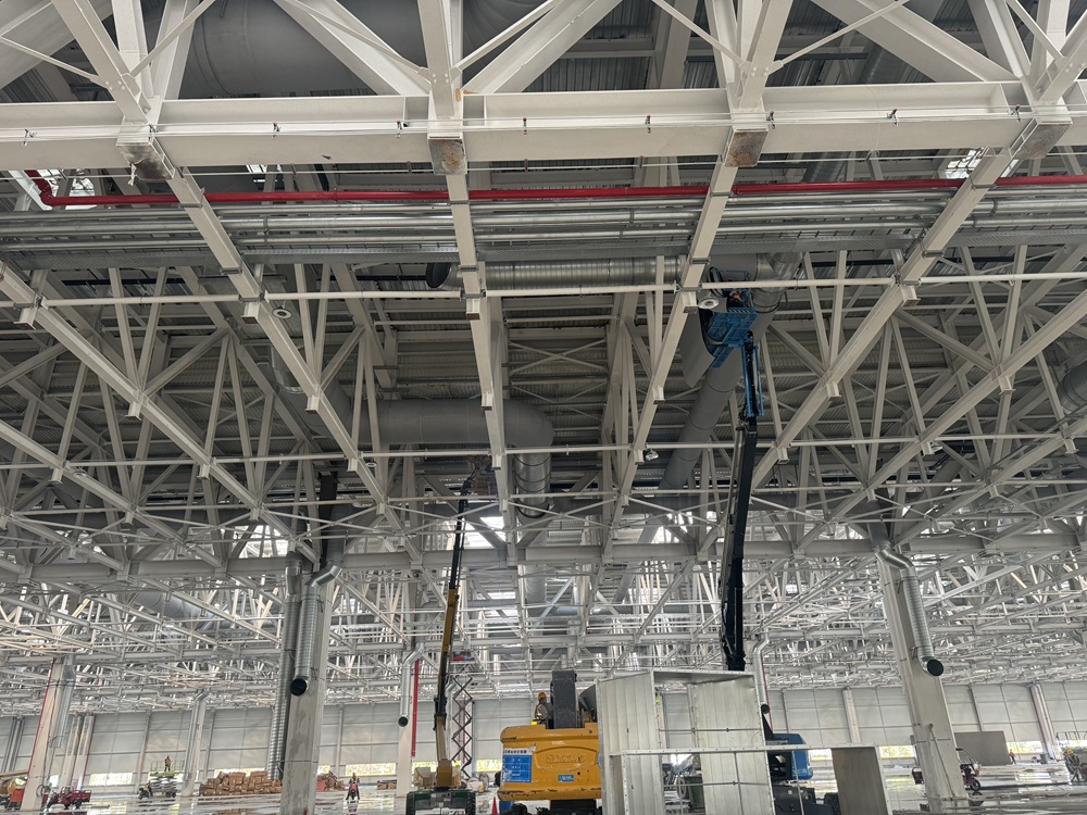 目前,“完成首開(kāi)區”節點(diǎn)目標已完成,總產(chǎn)值完成7000萬(wàn)。本周現場(chǎng)施工人數約450人,升降車(chē)、登高車(chē)等機械約180臺。電氣班組完成橋架安裝12000米,燈具安裝3000盞,電線(xiàn)安裝70000米,電氣配管安裝15000米;給排水班組完成管道安裝21000米;暖通班組完成風(fēng)管制作與安裝45000平方米;消防班組完成消防管道安裝8500米。