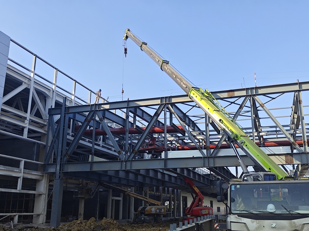 雖已立冬,天氣轉涼,但合肥新橋智能制造產(chǎn)業(yè)園一階段一標項目部戰鼓依然在響,施工現場(chǎng)依舊是一片奮戰猶酣的火熱場(chǎng)面。吊車(chē)揮舞著(zhù)“長(cháng)臂”、升降車(chē)起起落落、施工車(chē)來(lái)回穿梭、工人們忙忙碌碌,敲擊聲聲聲入耳……一切都在為確保競賽節點(diǎn)努力拼搏著(zhù)。