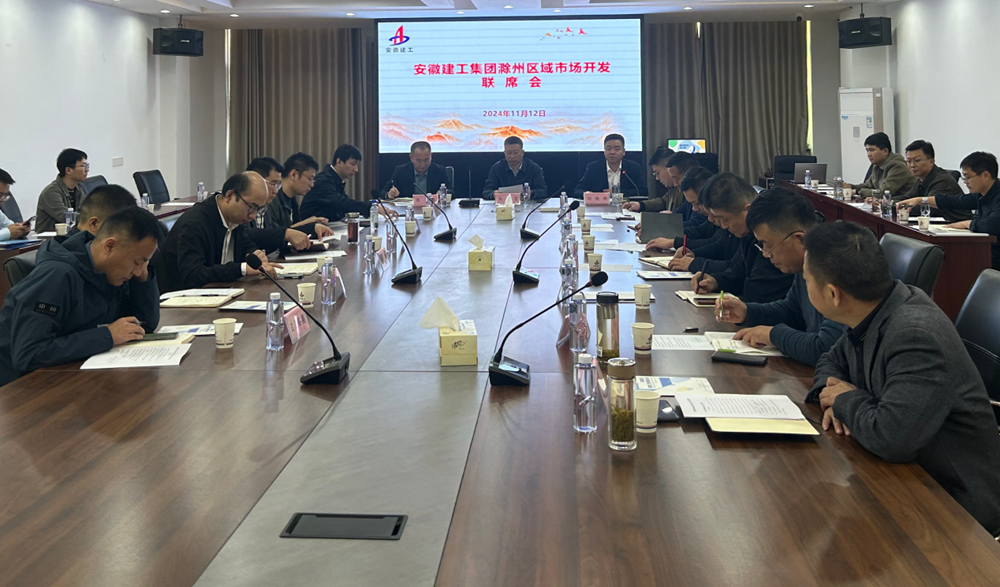 11月12日下午,安徽建工集團滁州區域市場(chǎng)開(kāi)發(fā)第三次聯(lián)席會(huì )在建工交航全椒建投大會(huì )議室召開(kāi)。建工安裝黨委書(shū)記、董事長(cháng)朱珍宏,建工交航黨委委員、副總經(jīng)理邢磊,集團在滁各單位主要負責人參加會(huì )議。會(huì )議由建工安裝黨委委員、副總經(jīng)理劉曉剛主持。