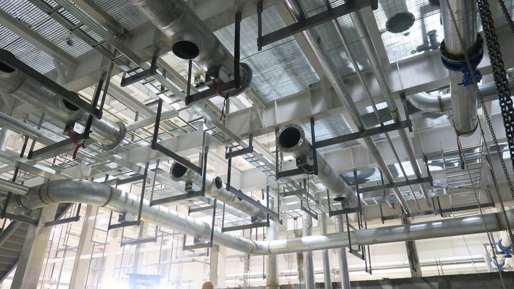 截至目前,焊裝車(chē)間空調水系統、給水系統、消防水系統已全部完成系統試壓工作。焊裝車(chē)間屋頂風(fēng)機、風(fēng)機控制電纜、動(dòng)力電纜也已全部安裝完成。與此同時(shí)本項目的能源中心正在有條不紊的推進(jìn),冷水機組、冷卻塔、水泵等大型設備陸續到場(chǎng)。