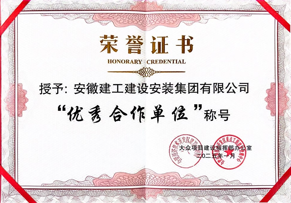 近日,建工安裝合肥分公司經(jīng)開(kāi)區臨湖智能制造產(chǎn)業(yè)園項目榮獲合肥經(jīng)濟技術(shù)開(kāi)發(fā)區建設發(fā)展局、合肥經(jīng)濟技術(shù)開(kāi)發(fā)區重點(diǎn)工程建設管理中心授予的“優(yōu)秀合作單位”榮譽(yù)稱(chēng)號,此份榮譽(yù)充分肯定了項目施工履約過(guò)程中的卓越表現,為2024年終“大考”和2025年“開(kāi)新局、起好步”奠定了堅實(shí)基礎。