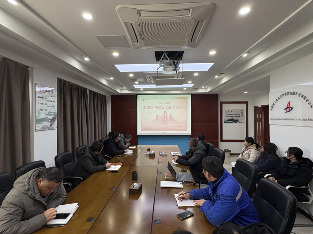 2月13日下午,建工安裝安慶分公司召開(kāi)安徽建工集團核心價(jià)值宣貫會(huì )議,會(huì )上傳達學(xué)習了集團《關(guān)于開(kāi)展安徽建工集團核心價(jià)值觀(guān)學(xué)習宣貫的通知》文件,并對集團核心價(jià)值觀(guān)“誠信共贏(yíng)、卓越創(chuàng )新、忠誠擔當、敬業(yè)清正”進(jìn)行闡釋講解。