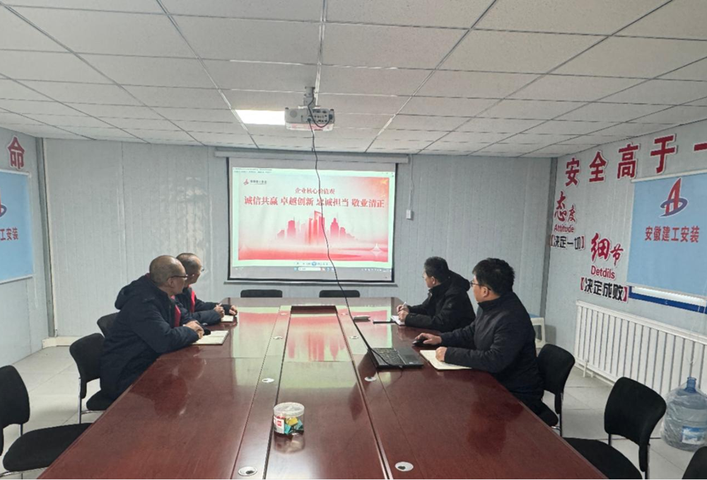 近日,建工安裝新疆烏蘇分公司召開(kāi)專(zhuān)題學(xué)習會(huì ),傳達學(xué)習宣貫集團核心價(jià)值觀(guān),會(huì )議以現場(chǎng)+視頻方式召開(kāi),分公司黨支部書(shū)記、經(jīng)理李磊主持會(huì )議,分公司領(lǐng)導班子成員、機關(guān)及項目人員參加。