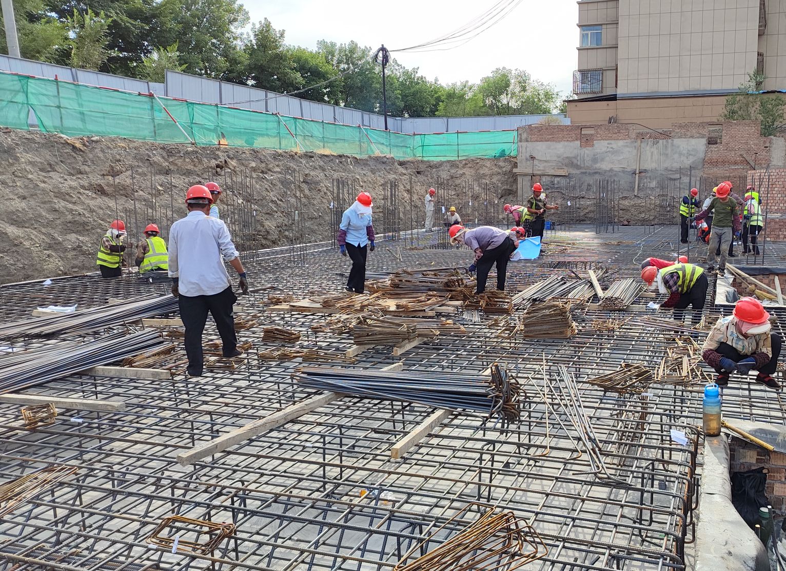 盛夏七月,熱浪襲人,建工安裝新疆烏蘇南苑項目部全體成員鉚足干勁、火力全開(kāi),奮戰在項目一線(xiàn)。該項目新建兩棟主樓,目前處于筏板基礎鋼筋綁扎。