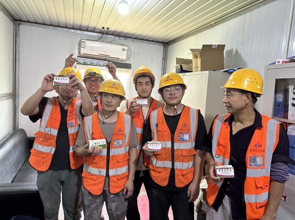 在作業(yè)點(diǎn)附近設置多個(gè)“清涼驛站”,現場(chǎng)發(fā)放防暑降溫藥品