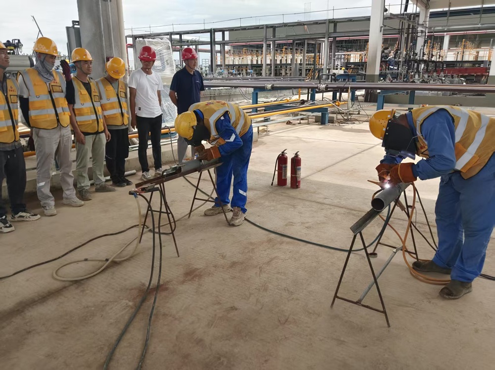 本次比賽共有6名焊工參賽。比賽分為理論考核和實(shí)際操作考核兩部分,理論考核涵蓋焊接基礎知識、安全規范等內容;實(shí)際操作考核設置了管道焊接、板材對接焊兩個(gè)項目,重點(diǎn)考察選手的焊接操作技能、質(zhì)量控制能力和現場(chǎng)應變能力。比賽由項目技術(shù)負責人、安裝負責人擔任評委,確保了比賽的專(zhuān)業(yè)性和公正性。